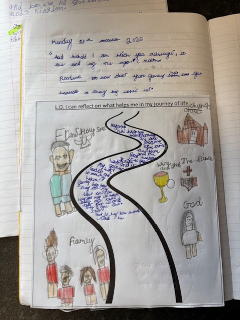 As a 'School of Faith' our children are taught about God’s love; they learn about their Christian responsibilities; children are provided with experiences of church and Catholic and Christian traditions. The children are encouraged to express their own faith and to be respectful and understanding of people and traditions from other faith backgrounds. RE lessons will be faith-filled, enjoyable lessons where each child feels they belong to our school community. The use of religious vocabulary is used in all lessons by both the adults and children. Through discussion, challenge and talking partners the children develop a deeper understanding.